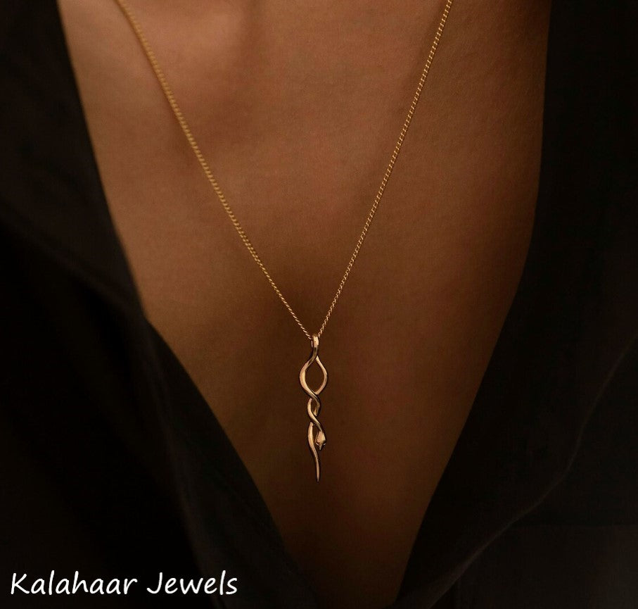 Dainty Gold Snake Pendant – Serpent Necklace in Rose Gold & White Gold
